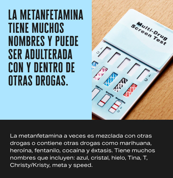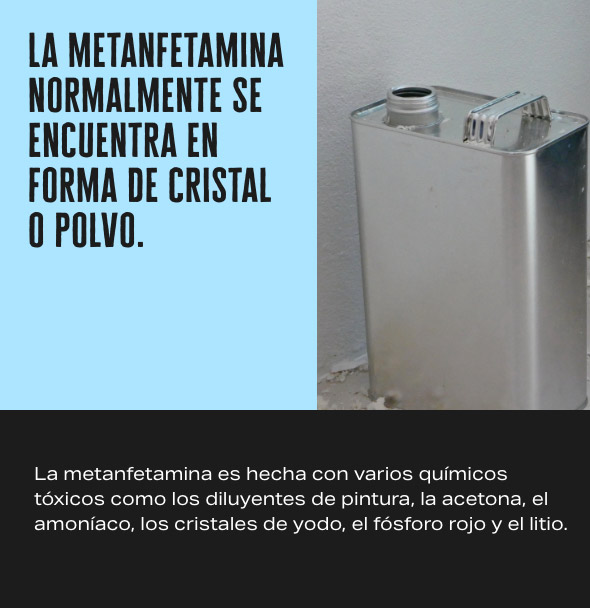 La metanfetamina se puede fumar, inhalar, inyectar, o tomar en forma de pastilla.